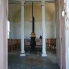 - main structure with steeply pitched gable roof;