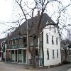 - its wood-frame construction anchored to the ground by stabilizing wires, its stone foundation and concrete floor;