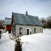 - the 1 1/2-storey house, of wood-frame construction, with a steeply pitched gable roof, large off-centre gable dormer, walls of horizontal wood siding painted white, an orderly arrangement of single tall rectangular windows, wood shutters, a brick chimney, delicate but unadorned eave brackets