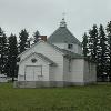 The property’s status as a landmark is enhanced by its landscape and its proximity to Grid 736. The church is easily visible to west bound traffic on Grid 736, as the church stands out from the landscape because of its tall form and bright white colour, which contrasts with the surrounding agricultural land. This contrast is further enhanced by the shelterbelt of coniferous trees surrounding the property, which provides a dark backdrop for the white church, making it recognizable at a great distance.
