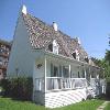 - son volume, dont le corps de logis de plan rectangulaire à un étage et demi, le toit à deux versants avec avant-toits retroussés couvert de tôle à baguettes et la galerie couverte d'un avant-toit en façade;