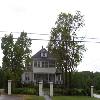 - low wooden picket fencing extending across the front grounds and adjacent barn to the west;